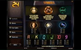 24 är spelet för alla som älskade serien 24 som gick på TV i början av 2000-talet. Spelet är utvecklat av iSoftBet och lanserades 2015 och består av fem hjul och 243 olika vinnande linjer. Spelet innehåller både ljud och symboler från serien, till exempel en agentbricka och Jack Bauer själv. Det finns chanser till gratissnurr men också möjlighet att komma till en bonusbana.