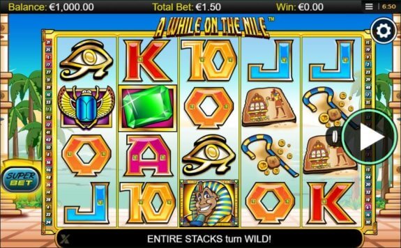 SuperBet är NextGens egna funktion och innebär att du genom att satsa lite mer har chansen att vinna mer. I A While on the Nile innebär denna fiffiga funktion att du ställer in SuperBet med en wild-multiplikator som i sin tur gör så att din insats värderas högre. Att använda den här funktionen kan vara till din fördel om du spelar den smart, och inte som ett standarddrag.
