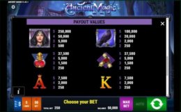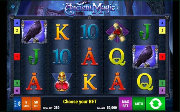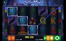 Spelet har 5 hjul och totalt 5 vinstlinjer där du måste få vinnande kombinationer för att komma åt de stora priserna. Försök att snurra häxsymbolen över en vinstlinje på rullarna 1 och 2, vilket leder till att ditt pris blir 10x din insats. Ett gigantiskt pris på hela 5 000x din insats kan vinnas om du prickar in hela linjer. Spelaren hittar även mer högbetalande symboler på rullarna, så som Black Ravens. Om du landar den här symbolen över 5 rullar, blir ditt pris 2 000x din insats. Denna attraktiva slot har höga utbetalningar, så försök att spela Ancient Magic först via en demoversion och sedan med riktiga pengar online.
