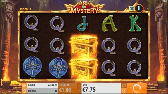 Ark of Mystery har inga regelrätta free spins men istället finns här möjligheten till att få re-spins, och i teorin fungerar dessa likadant eftersom det handlar om gratis snurr som man kan göra ytterligare vinster med. Spelets re-spins triggas med hjälp av wild-symbolen i Ark of Mystery som förstås är ett guldfärgad ark.