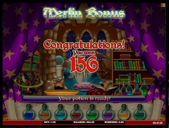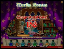 Nu återstår bara bonussymbolen, och den aktiverar bonusspelet i vilket du måste hjälpa trollkarlen med sina trollbrygder. Som belöning får du massiva priser! Du måste dock komma ihåg att du behöver samla tre eller fler bonussymboler för att trigga igång den här funktionen.
