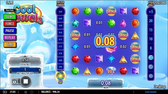 Det spännande spelet Cool Jewels syns ovanpå en bakgrund som föreställer is och påminner om Nordpolen. Vad som verkligen kommer få ditt blod att koka är spänningen i spelets handling som sker på en layout om 6 x 6 rader med symboler som faller från himlen för att bilda eldiga och heta kombinationer. Spelet garanterar en rolig upplevelse, men tro inte att det är allt utan spelet har även en fantastisk ersättning ed en RTP om 96,01%. Utvecklarna på WMS skapade sannerligen ett minnesvärt spel som du alltid kommer vilja spela en gång till när de skapade Cool Jewels.