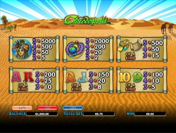De lågt utbetalande symbolerna i denna spelautomat representeras av det vanliga setet – 9, 10, J, Q, K, och A. De högt utbetalande symbolerna är de som du verkligen vill hålla utkik efter, inte minst eftersom de är en fröjd för ögat, föreställande kulturen av det antika Egypten såsom en papyrus-rulle, en ankh, en skalbagge och egyptiska gudar. Slutligen finns Wild-symbolen som är Krokodilkungen i egen hög person, och pyramiderna representerar Scatter-symbolen.