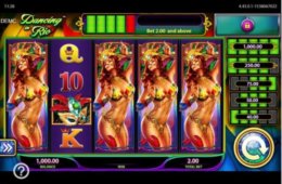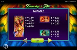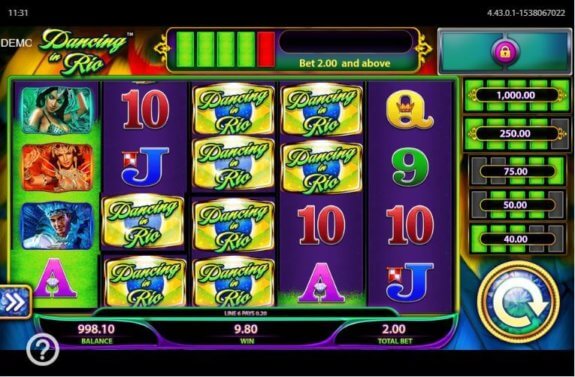 Dancing in Rio är ett spel som är skapat av och numera drivs av WMS Gaming. Det är ett färgglatt spel som sannerligen står ut ur mängden tack vare den glada stämningen och snygga animationerna som spelet erbjuder. Om du tycker om dans, och om rytmisk musik får dig att ställa dig upp och skaka på höfterna, så är det hög tid att du snurrar igång hjulen på den här spelautomaten.