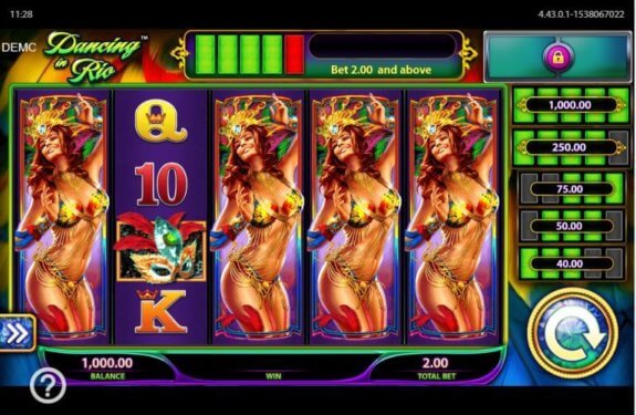 WMS går att hitta precis överallt på internet, och deras spel är rankade till några av de allra bästa i världen enligt casino-entusiaster världen över. Deras unika ståndpunkt när de skapar spelautomater gör att de alltid lyckas skapa något nytänkande som Dancing in Rio. Det blev omedelbart ett sådant spel som lockade till sig uppmärksamheten från många online-casinon och många spelare ville testa ett par snurr. Men gissa vad? Du kan även testa att snurra på hjulen alldeles gratis, eftersom WMS har gjort att detta spel går att spela med fejk-pengar. Kom ihåg att festen på gatorna i Rio bara börjar på riktigt när du väl spelar med riktiga pengar, men innan du kör igång med hårdhandskarna är det alltid bra att läsa vad vårat team har att säga om just denna spelautomat!