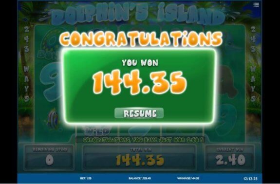 Att dra igång spelet och börja spela Dolphin’s Island är en enkel process. Till vänster om spin-knappen finns de fem myntvärdena tillgängliga – 2,50, 5,0, 7,50, 10,0 och 12,50. Till höger hittar du spelets praktiska autoplay-funktion som tillåter dig att snurra på hjulen 1000 gånger automatiskt, och det kan anpassas för att avsluta om spelarens saldo blir för lågt, eller om det överstiger ett visst belopp.