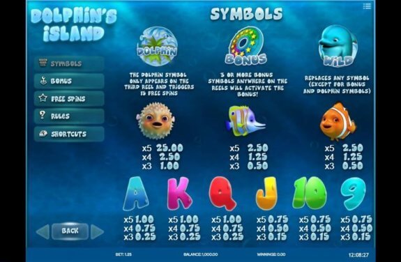 Har du alltid velat åka på semester till en tropisk ö men aldrig haft tillräckligt med vare sig tid eller pengar? Följ med delfinen och de exotiska invånarna i vattnen kring Dolphin’s Island och upplev din drömsemester direkt hemifrån soffan, eller var du än befinner dig! Dyk ner i det klara vattnet och lata dig på de vackra stränderna, och glöm inte att utforska havsbotten i hopp om att hitta en skatt med hjälp av de lekfulla figurerna som finns i denna förtjusande spelautomat.