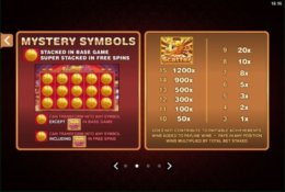 Mystiska symboler är ett antal gyllene dörrar som kan dyka upp slumpmässigt på spelskärmen och om du öppnar dem kan de avslöja en av alla symboler som finns (dock inte wild-symbolen). Detta hjälper dig att bilda ännu bättre vinstkombinationer, och om du spelar med Gratis Spins så kan du även hitta Wild-symboler bakom de stängda dörrarna.