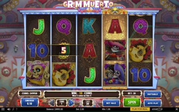 Grim Muerto spelautomat är enkel att bemästra tack vare att alla kommandon visas tydligt på skärmen i lättolkade rutor. Det enda som är kvar att göra är att bestämma din satsning och värdet på dina mynt, och trycka på Spin-knappen för att sätta igång allt det roliga.