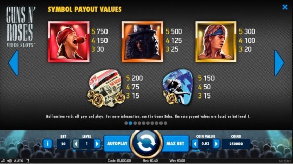 Det kan vara bra att testa på Guns N' Roses utan att satsa några riktiga pengar för att se om det är någonting för dig, samt ha i åtanke att ingen jackpott erbjuds.