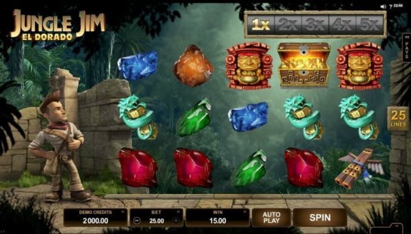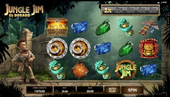 Jungle Jim är en spelautomat med äventyrstema från välkända mjukvaruleverantören Microgaming. Trots att det bara finns 25 vinstlinjer, säkerställer kaskaderna och ökande multiplier att du kommer ha riktigt roligt när du spelar detta spel. Som du kanske anar är Jim spelets huvudperson och du får utforska en actionfylld djungel när du går på jakt efter de största priserna.