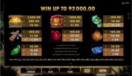 Förutom den spännande kaskadfunktionen bjuder Jungle Jim på andra funktioner för att göra din tid framför spelautomaten så rolig som möjligt. Gratis spins sker när du får 3 Scatters, var som helst på rad 1, 2 eller 3. Du får då 10 gratis spins och kaskadfunktionen fortsätter gälla även här. Vinster multipliceras med 3x och den kan öka till både 6x, 9x, 12x och till och med 15x om du lyckas få flera vinster i rad. Du kan även trigga gratis spins-funktionen en gång till vilket ger dig ytterligare 10 gratis spins. När det kommer till basspelet finns det ett par symboler som är värda att känna igen. Skattkistan är den mest lukrativa, och om du lyckas få 5 stycken sådana på en vinstlinje får du hela 3000 mynt om du satsar max. Topaserna ger dig 1000 mynt och ormarna ger dig 500 mynt. De olikfärgade ädelstenarna är symbolerna som är värda minst i spelet.