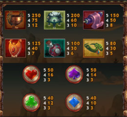 När det gäller insatser i Legend of the Golden Monkey Slot kan du satsa mellan 2,50 kronor upp till så mycket som 1 250 kronor. Detta betyder alltså att alla spelare är välkomna att delta i detta spännande speläventyr där allt kan hända. Din insats justerar du enkelt med hjälp av myntvärdet längst ner till vänster på skärmen. Detta värde anger helt enkelt hur mycket de mynt du spelar med ska vara värda (mellan 0,01 och 5,00). Symbolerna i sloten dyker upp som bland annat pappersrullar, mystiska flaskor, kärl och smycken. Det gyllene kärlet är värt mest och spelkortssymbolerna (hjärter, ruter, spader och klöver) är värda minst.