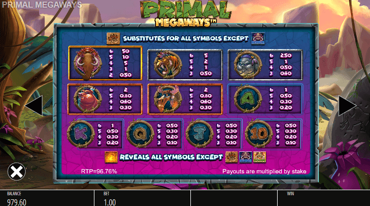 I Primal Megaways har du också chans att vinna free spins. Vinn mellan 10, 15, 20 eller 30 free spins med tillhörande wild-multiplikatorer! Wild-multiplikatorerna multipliceras med varandra och kan ge häpnadsväckande vinster. Primal Megaways har en RTP på 96,76 procent och har en hög volatilitet. Detta betyder att vinsterna kommer mer sällan, men när de väl dyker upp kan vinsterna vara enorma. Detta är alltså ett spel för dig som gillar högriskspel och höga vinster.