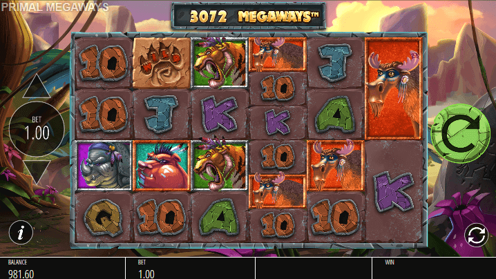 Primal Megaways är vackert utformad spelautomat som har en högklassig grafik. Symbolerna passar spelets tema väl. I spelet finner du totalt 14 stycken symboler. Spelets sex högutbetalande symboler består av fem uråldriga djurarter samt spelkortssymbolen A. De lågutbetalande symbolerna består av spelkortssymbolerna K, Q, J och 10. Det finns även fyra stycken speciella symboler i spelet, som triggar olika bonusfunktioner. Primal Megaways har en typisk utformning för Blueprint Gamings spel tillsammans med Big Time Gamings Megaways-funktion. Spelet har 6 hjul och totalt 46 656 stycken vinstsätt. Vinstsätten är något färre än i de flesta Megaways-spel, men detta vägs upp av att spelet har en RTP på 96,76 procent samt en hög volatilitet.