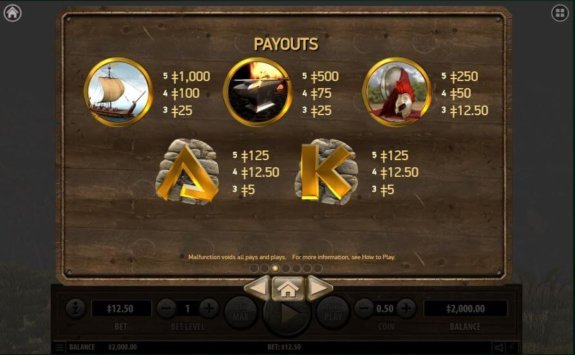 Sparta har också en funktion för ”Auto-spin”, och precis ovanför dess knapp, kan du också ställa in antalet spins som den ska utföra innan den stannar. Om du klickar på knapparna ”Info”, eller ”Meny” kommer du till de generella inställningarna, där du kan ställa in musiken, ljudet eller se all information om vinstlinjerna och symbolernas värde.