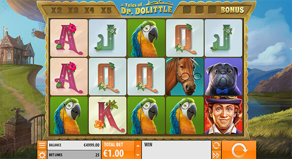 Tales of Dr. Dolittle lanserades under våren 2019 av den omtyckta spelutvecklaren Quickspin. Här har man skapat en vacker slot med ett tema baserat på novellerna om Dr. Dolittle från det tidiga 1900-talet. Denna man hade en fantastisk förmåga – han kunde nämligen tala med djur. I Tales of Dr. Dolittle Slot har man inkorporerat både Dr. Dolittle och hans allra närmaste vänner och skapat ett äventyr med både fart och spänning.