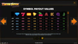 Maxvinsten ligger alltså på 100 000 mynt och förmodligen är det denna storvinst som lockar en hel del spelare till denna snygga slot. Twin Spin Deluxe är dessutom en slot som passar alla typer av spelare med tanke på att spannet för insatser är väldigt stort. Du kan satsa allt ifrån 1 krona upp till hela 1 000 SEK. Tyvärr finns inget bonusspel, wildsymbol eller free spins-läge, men det kompenseras med andra spännande funktioner.
